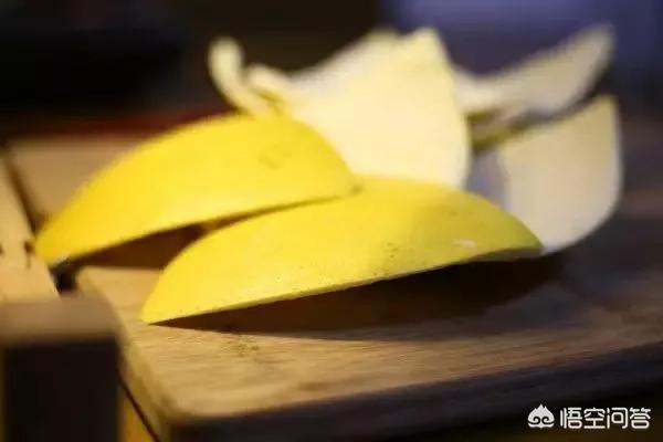 [Préparation]Retirez la peau jaune verdâtre de l'écorce de pamplemousse, en laissant le "coton" blanc à l'intérieur.