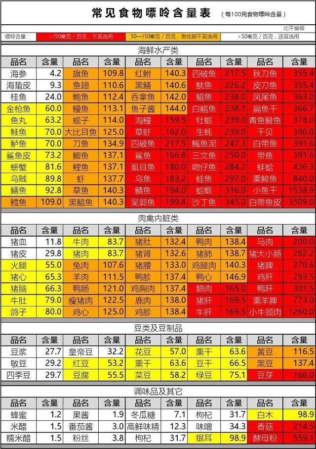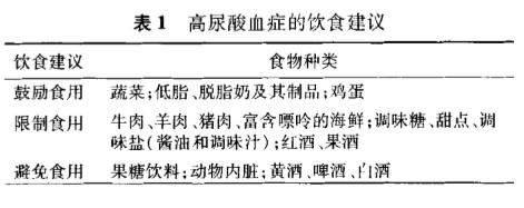 1, régime alimentaire sain : les personnes souffrant déjà de goutte, d'hyperuricémie, de facteurs de risque métaboliques et cardiovasculaires, ainsi que les personnes d'âge moyen et les personnes âgées, doivent adopter un régime alimentaire à base d'aliments pauvres en purine, dont les recommandations figurent dans le tableau ci-dessous.