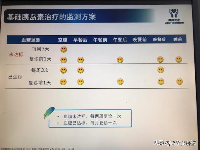 1) Les patients dont la glycémie est mal contrôlée ou dont l'état est critique doivent surveiller leur glycémie entre 17 et 19 heures tous les jours (17 heures : à jeun, après le déjeuner, avant le dîner, après le dîner, avant le coucher ; 19 heures : à jeun, après le petit-déjeuner, avant le déjeuner, après le déjeuner, avant le dîner, après le dîner, avant le coucher) jusqu'à ce que leur état se stabilise et que leur glycémie soit sous contrôle, et ils peuvent mesurer leur glycémie 1 à 2 jours par semaine lorsque leur état se stabilise ou qu'ils atteignent leur objectif de traitement. -2 jours