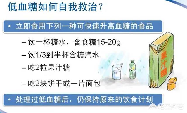 Que faire en cas d'hypoglycémie ? Vous devez immédiatement manger 15 à 20 g d'aliments sucrés, tels que 3 à 4 morceaux de sucre, 1 cuillère à soupe de sucre, 3 biscuits, une demi tranche de pain ; s'il n'y a pas d'en-cas sucrés à proximité, vous pouvez également boire une demi-tasse de jus ou de boissons sucrées, la plupart des symptômes de l'hypoglycémie peuvent être soulagés en 15 minutes, si les symptômes de brûlures d'estomac, de tremblement des mains, de sueurs froides et autres symptômes n'ont pas été soulagés, vous devez à nouveau manger la même quantité d'aliments sucrés, jusqu'à ce que vous soyez soulagé. Pour les personnes diabétiques qui sont inconscientes, les mesures suivantes doivent être prises immédiatement pour se sauver et consulter un médecin dès que possible :