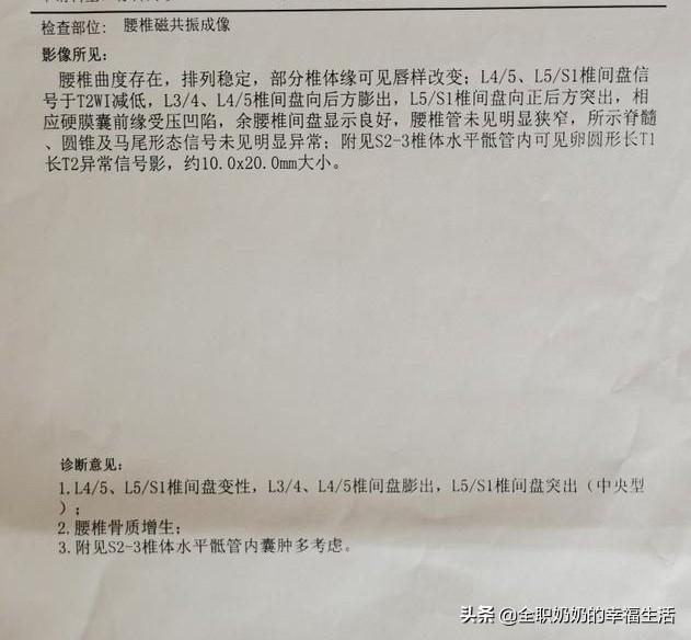 Mais à la veille de la fête nationale de cette année, les fesses sont soudainement devenues des jambes et la douleur insupportable, en plus de la position allongée, le reste de toute action est douloureux, il est allé à l'hôpital pour faire un magnétisme nucléaire, le diagnostic est le suivant :
