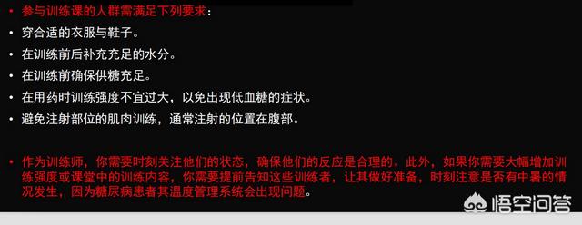 Les lignes directrices recommandent : exercice 1-3 heures après les repas, acidocétose diabétique, glycémie à jeun >16,7 mmol/L, rétinopathie proliférative, néphropathie (Cr>176,8 μmol/L), maladie cardiovasculaire sévère (angine instable, arythmie sévère, accident ischémique transitoire), combinée à des infections aiguës, et la glycémie inférieure à 4,0 mmol/L n'est pas adaptée à l'exercice pour l'instant. L'exercice n'est pas adapté aux patients dont la glycémie est inférieure à 4,0 mmol/L.
