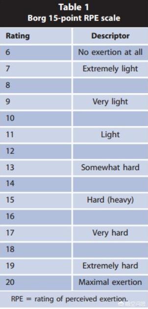 Le RPE (Rating of Perceived Exertion) est le niveau d'évaluation subjective de l'intensité de l'entraînement : 11 pour facile, 13 pour un peu difficile, 15 pour plus difficile et plus difficile à maintenir, 17 ou plus très difficile à faire, et 20 est la limite de la tolérabilité.