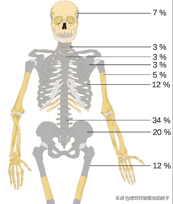 Les métastases osseuses survenant dans la colonne vertébrale sont les plus fréquentes (34 %), suivies par le bassin (20 %) et les os longs des membres inférieurs (12 %).。