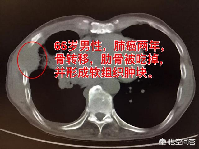 Il y a quelques jours, un patient atteint d'un cancer du poumon avec métastases osseuses a été diagnostiqué. Ses symptômes sont des douleurs lombaires de longue durée, ils ont toujours pensé qu'il s'agissait d'un claquage musculaire lombaire ou d'une hernie discale lombaire, mais ils ne se sont pas inquiétés, la douleur est vraiment sérieuse et les symptômes nerveux des membres inférieurs sont apparus. ...... recherche détaillée des antécédents médicaux, découverte que le patient présente depuis longtemps des symptômes de toux, ce qui permet de soupçonner un cancer du poumon avec métastases osseuses, l'examen tomodensitométrique du poumon a révélé que le foyer principal ...... est un énorme cancer du poumon.
