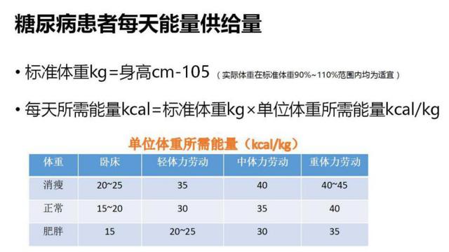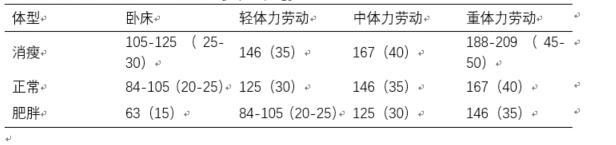 Le contrôle raisonnable de l'apport énergétique total quotidien est le premier principe de la thérapie diététique du diabète. En fonction du rappel du patient et de son poids idéal, il est possible deReportez-vous au tableau ci-dessous pour estimer l'apport énergétique journalier [kJ(kcal)/kg].