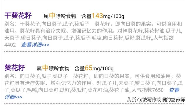 Cependant, on peut dire que les graines de melon sont un terme général, comme les graines de melon d'eau, les graines de citrouille, les graines de tournesol peuvent être appelées graines de melon. Si nous examinons attentivement le tableau ci-dessus, nous constatons queLa teneur en purine des graines de tournesol séchées est encore relativement élevée, chaque 100 grammes de graines de tournesol séchées contenant en fait 143 mg de purine.Ce montant est celui qui appartient àTeneur moyenne en purineLes ingrédients sont maintenant, pour les patients souffrant d'hyperuricémie ou de goutte à la consommation appropriée, les patients goutteux dans la phase aiguë n'est pas recommandé de consommer des graines de tournesol de ce foie sec.