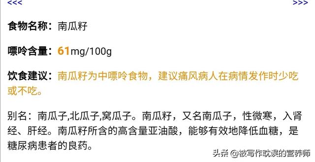 Troisièmement, s'il s'agit de graines de citrouille, le même conseil que pour les graines de tournesol, elles ont une teneur moyenne en purine, bien que la valeur nutritionnelle soit plus élevée, mais il ne faut pas en manger davantage.
