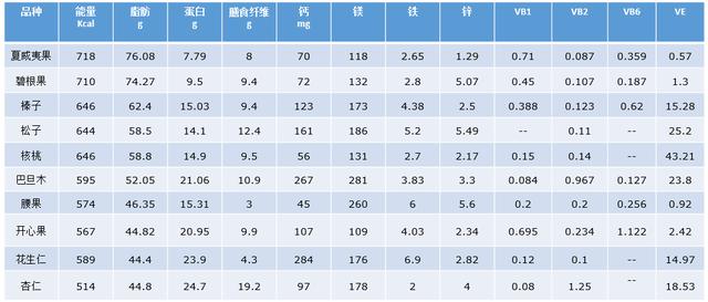 La consommation quotidienne de fruits à coque doit donc tenir compte d'une quantité, la quantité est de combien ? Le vieux Liu vous a donné un tableau :