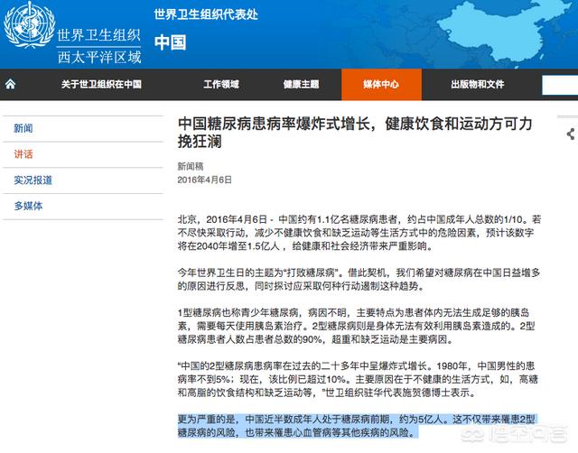 L'origine de cette affirmation n'est pas difficile à trouver, elle repose principalement sur les résultats de la dernière étude publiée par nos chercheurs dans le Journal of the American Medical Association en 2016, qui dit : " Le taux de prédiabète des adultes âgés de 18 ans et plus en Chine est de 50,1 %, et près d'un demi-milliard de personnes dans le pays sont confrontées à un risque élevé de développer un diabète à l'avenir. " À première vue, le grand public doit être choqué : n'y a-t-il pas environ trois personnes sur une qui sont diabétiques ? Bien sûr que non.
