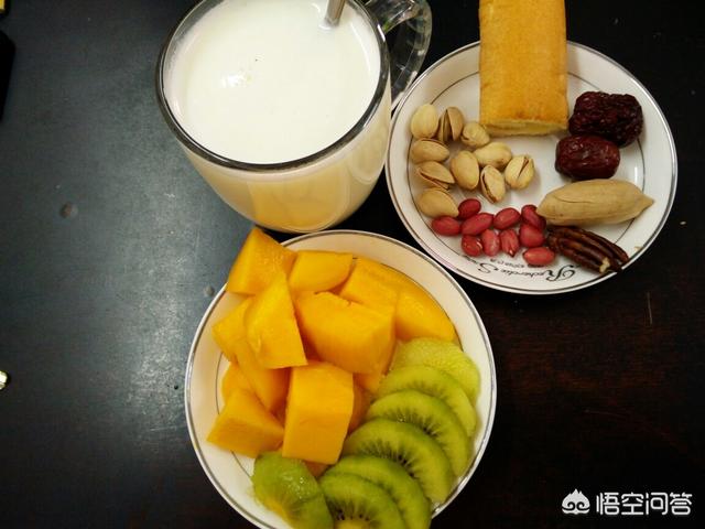 Le pain, le lait ou le jus de fruit constituent un type de petit-déjeuner courant. Le petit-déjeuner chinois typique se compose de riz fin, qui contient beaucoup d'eau, l'amidon ayant été partiellement décomposé après une longue période d'ébullition, et les plats d'accompagnement, à l'exception des œufs et du tofu, sont principalement des produits transformés et marinés à forte teneur en sel, qui ne contiennent pas de nutriments suffisants et appropriés. Les petits-déjeuners occidentaux sont relativement meilleurs que les petits-déjeuners chinois en termes de qualité, mais ils peuvent également contenir trop de graisses et d'amidon, en particulier les produits de boulangerie ayant un bon goût, tels que diverses sortes de pains contenant de l'amidon.