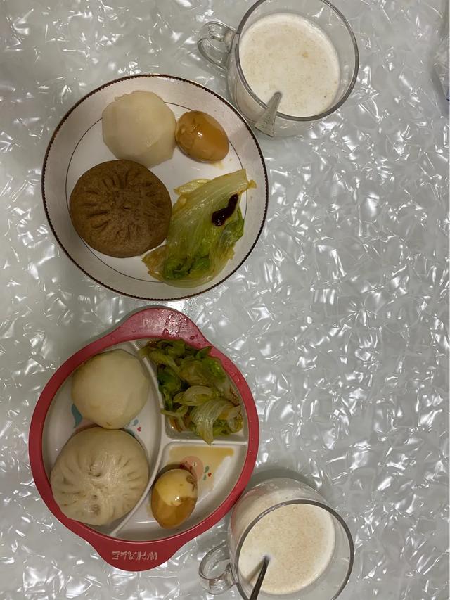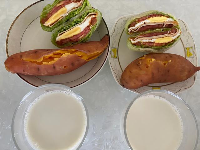 Le quatrième jour, des œufs et du lait de soja le matin, du bœuf et de la laitue pour le déjeuner.