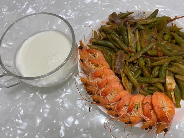 Jour 5 œuf et lait de soja le matin, crevettes au déjeuner