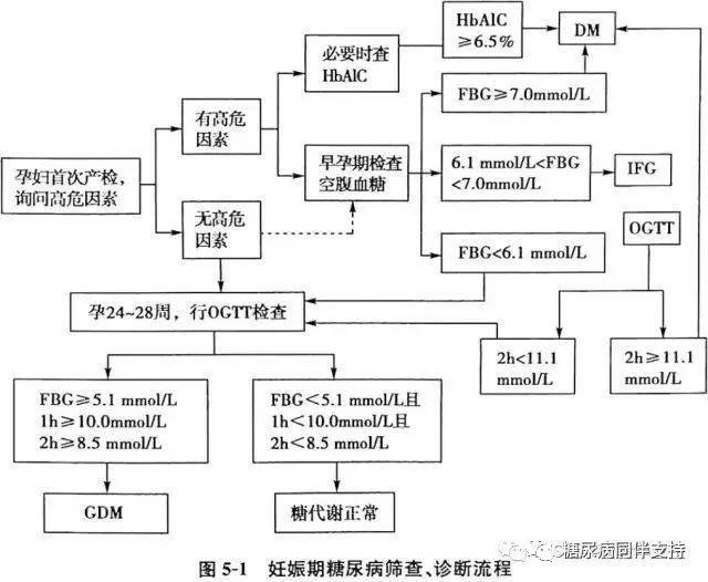 Selon les lignes directrices pour le traitement du diabète sucré gestationnel publiées en 2014 : le diabète sucré gestationnel comprend à la fois le diabète sucré pré-gestationnel (DGP) et le diabète sucré gestationnel (DGG) ; lorsqu'il est détecté pour la première fois pendant la grossesse et que l'élévation de la glycémie a déjà atteint les critères du diabète sucré, le diagnostic doit être posé comme un diabète sucré pré-gestationnel (DGP) plutôt que comme un DGG.