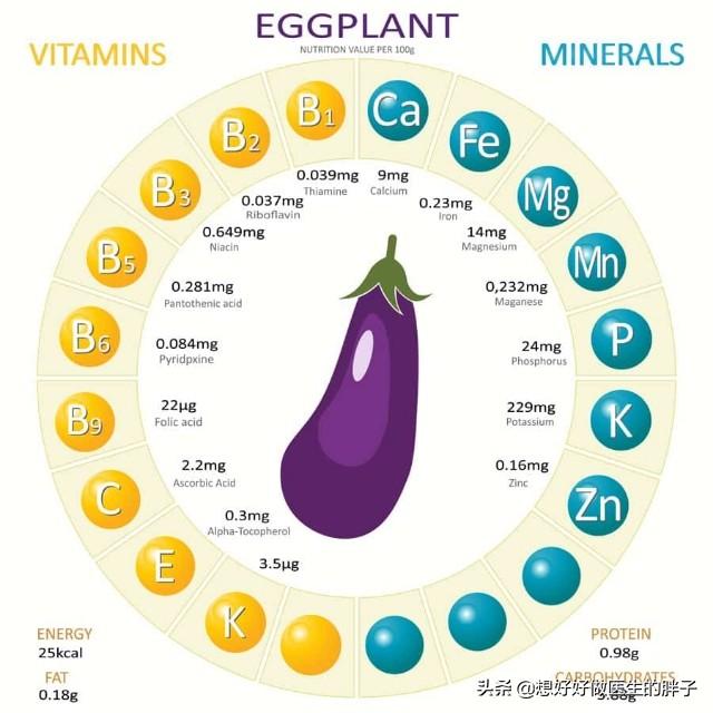 L'aubergine est également riche enAcide folique, potassium, vitamine K, vitamine Cetc., la teneur de ces ingrédients représente 3 à 5 % de ce qui est nécessaire à notre organisme au quotidien.