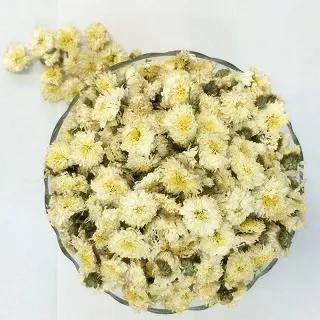 Le chrysanthème appartient aux méridiens du foie et du poumon et a pour fonction de disperser la chaleur du vent, d'éclaircir le feu du foie et d'éclaircir les yeux. Il peut donc être utilisé pour éclaircir le feu du foie, pour traiter l'irritabilité causée par le feu du foie, la rougeur des yeux, la sécheresse et l'amertume de la bouche, les étourdissements et les vertiges, ainsi que les maux de tête.