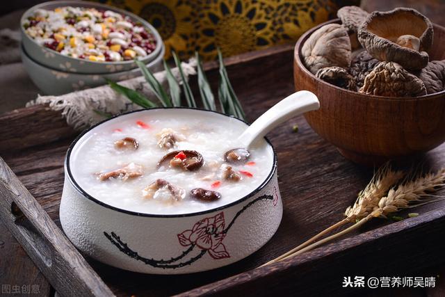 Diverses sortes de porridge, comme le porridge de céréales mélangées, le porridge d'avoine, le porridge de maïs, le porridge de dattes rouges et de graines de lotus, le porridge de viande maigre, le porridge de riz, le porridge de légumes, etc.