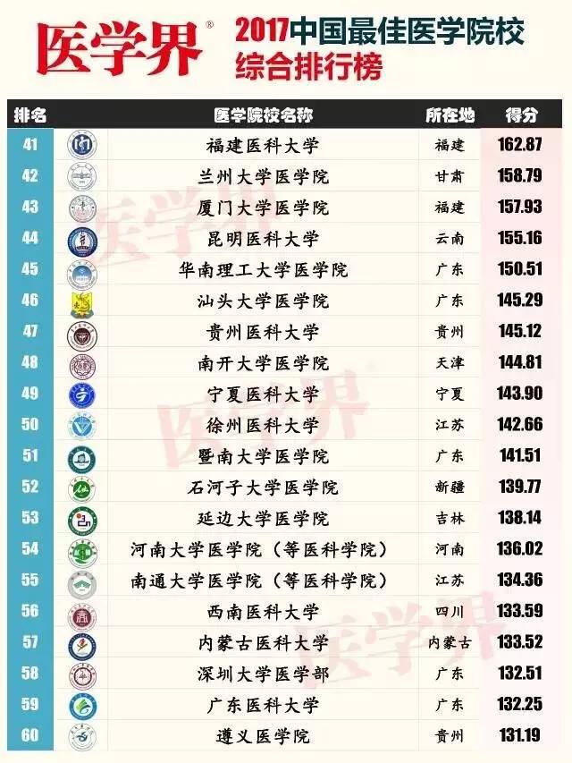 Autres universités médicales plus célèbres : Capital Medical University, Southern Medical University, Beijing University of Chinese Medicine, Shanghai Jiaotong University School of Medicine, Tianjin Medical University, Harbin Medical University, China Pharmaceutical University, Shanghai University of Traditional Chinese Medicine, Nanjing Medical University, China Medical University, etc ;
