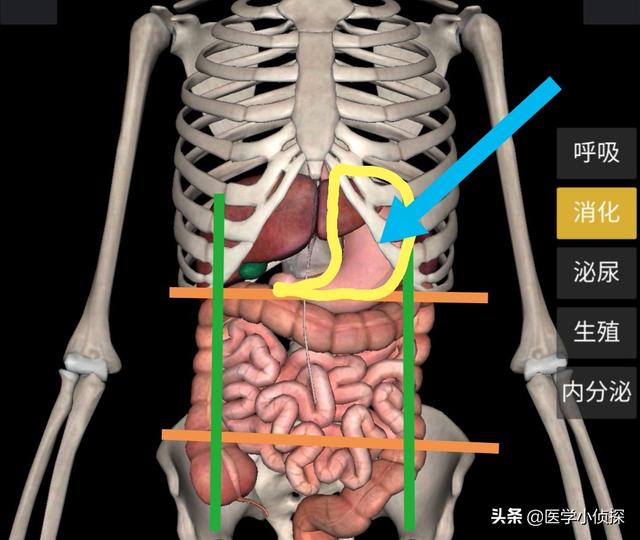 Pour répondre à la question.Il faut absolument que nous sachions d'abord exactement où se trouvent nos estomacs humains, et vous pouvez voir l'image ci-dessous