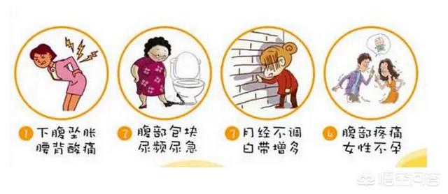 4, douleur : les fibromes utérins, s'ils exercent une pression sur les organes pelviens, les nerfs, etc., entraînent une distension du bas-ventre ou une douleur cachée ; la stimulation de la contraction utérine provoque également des douleurs.