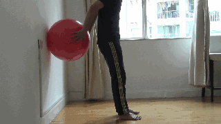 a. Entraînement au toucher du pied. Mettez-vous en position debout, le pied levé vers l'arrière, et essayez de faire de votre mieux pour toucher le pied ou la cheville levée avec votre main. Vous pouvez vous tenir au dossier d'une chaise ou d'une table, etc. Faites cet exercice bilatéralement et répétez-le des dizaines de fois par jour.