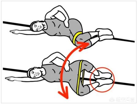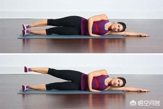 2, élévation latérale de la jambe : position couchée sur le côté, l'articulation du genou sur le côté peut être soulevée de 30 degrés, tomber lentement, 15 par groupe, 3-4 groupes.