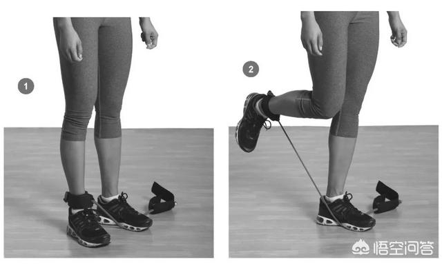 3, entraînement à la coquille : avec une bande élastique attachée au-dessus de l'articulation du genou, faire l'action d'ouverture de l'articulation du genou, en faisant attention à ne pas faire tourner le torse (vous pouvez vous appuyer contre le mur), descendre lentement, 15 par groupe, 3 à 5 groupes.