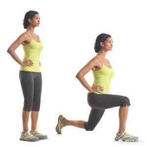 b. Squat en fente. Effectuez les mouvements comme indiqué et répétez plusieurs fois de chaque côté.