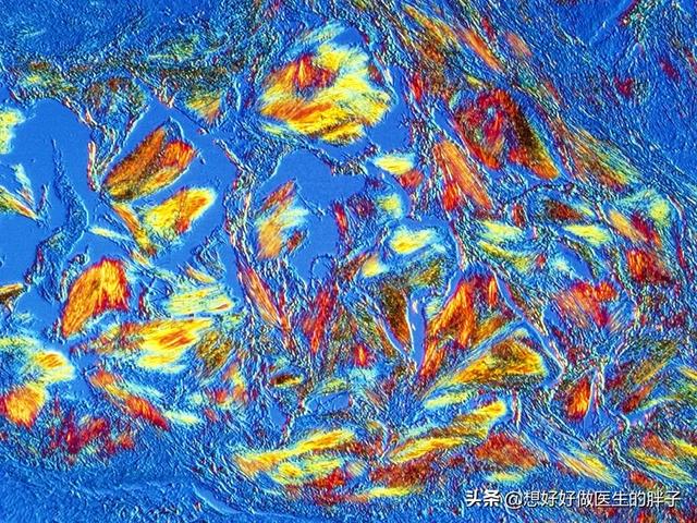Après un excès de concentration d'acide urique sanguin dans notre corps, et après un excès trop long, ces acides uriques sanguins en excès peuvent devenirCristaux d'urateLa goutte est une maladie qui se dépose dans de nombreuses parties de notre corps, en particulier dans les articulations portantes à l'extrémité distale de certains membres, comme les chevilles et les genoux. Une petite quantité de dépôts ne provoque pas de symptômes particuliers, mais si les dépôts sont plus importants, ils peuvent provoquer une crise de goutte à la suite d'un excès alimentaire, d'un rhume, d'un traumatisme ou d'autres raisons.