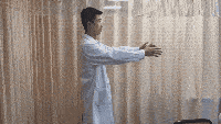 Zone de pression du coude vers l'arrière, mains opposées l'une à l'autre, lentement soulevées jusqu'au plan de l'articulation de l'épaule, l'articulation de l'épaule pour l'axe de rotation vers le bas de 90 °, puis rotation vers l'arrière, puis lentement abaissée, une série de 15-20 fois, faire 4 groupes.