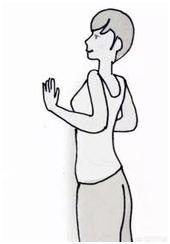 Face au mur, et le mur pour maintenir une distance de 30 ~ 1250px, deux mains en direct pour soutenir le mur, l'abdomen autant que possible contre le mur, et puis la taille en arrière, comme si soutenir le mur pour faire des pompes, chaque fois pour reculer la taille de l'action adhérer à la 20s, répéter 10 fois.