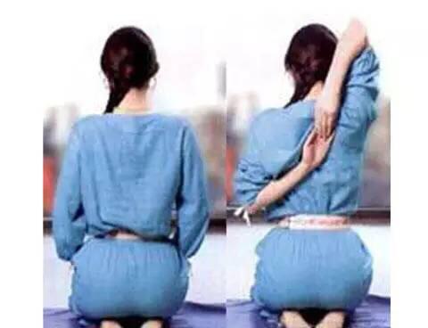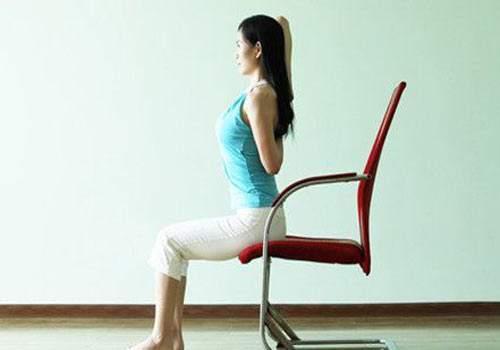 Attachez un coussin au dossier de la chaise et asseyez-vous sur la chaise, le dos droit et contre le coussin en même temps. Puis, les deux mains tendues vers le bas, en tenant le coussin de la chaise et le dossier, essayez de ramener les deux bras vers l'intérieur du corps, la poitrine et la tête légèrement vers l'arrière. Maintenez l'action pendant environ 20 secondes à chaque fois, répétez 10 fois.