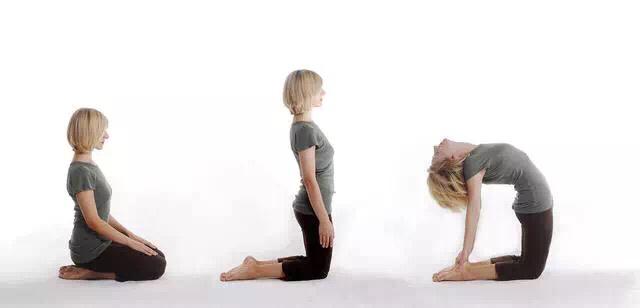 ↑ La pose du chameau peut corriger de mauvaises habitudes telles que se voûter et se courber, elle détend le cou en ouvrant la poitrine et l'arrière de la colonne vertébrale.