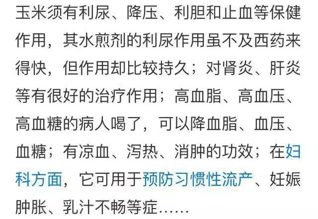 La brosse à maïs est très commune dans le nord, parce qu'elle est trop abondante, mais pas couramment utilisée, mais aux yeux de la médecine traditionnelle chinoise, c'est un "trésor". Le maïs ne va pas à la barbe pour cuire hors de l'eau, c'est aussi une bonne boisson désaltérante.