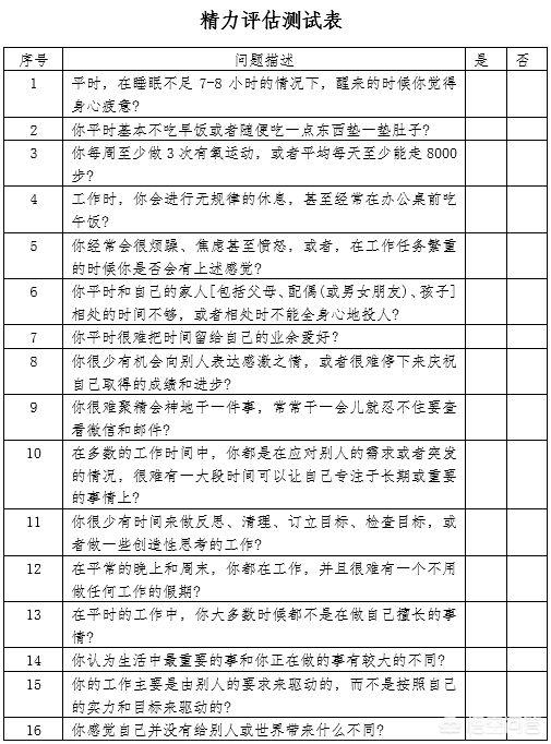 Enfin, vous trouverez ci-joint une feuille de test d'évaluation de l'énergie tirée du livre, qui vous permettra de commencer par déterminer si vous disposez de suffisamment d'énergie.
