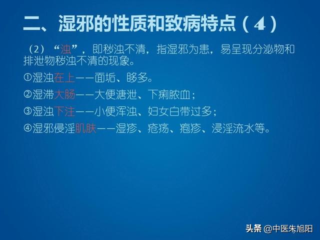 L'humidité et la stagnation de la chaleur forment un groupe très nuisible. Les caractéristiques de l'humidité sont un état liquide collant, trouble et difficile à disperser, comme le dit le proverbe, "l'eau coule vers le bas", parce que les caractéristiques de l'humidité sont lourdes et sales et ont tendance à s'enfoncer dans la partie inférieure des organes du corps, tels que la vessie, l'utérus des femmes, les extrémités inférieures des cuisses et d'autres parties de la formation de l'humidité et de l'injection de la chaleur. Performance. Le "Neijing" a dit que "la blessure à l'humidité, sous le premier affecté par le".