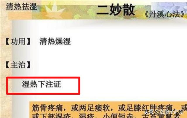 - Humidité et chaleur injectées dans les articulations et la peau des membres inférieurs : "Typhoid Miscellaneous Diseases" dit que "la nourriture blesse la rate et l'estomac, et l'humidité coule dans les articulations", et l'humidité et la chaleur injectées dans les articulations des membres inférieurs entraînent souvent des gonflements et des douleurs dans les articulations, par exemple, le régime de poisson et de viande et la consommation excessive d'alcool entraînent des lésions de la rate et de l'estomac, et les saveurs grasses, sucrées et épaisses produisent de l'humidité et de la stagnation, et injectées dans les gros orteils provoquent des rougeurs, des gonflements et des douleurs chez les personnes souffrant de goutte. Si l'ensemble s'accompagne d'une lourdeur de la tête et du corps, de membres lourds et douloureux, d'une distension abdominale, de selles collantes, d'une bouche amère, d'un enduit jaune sur la langue et d'autres manifestations, le traitement doit tenir compte de l'humidité et de la chaleur sous l'injection.