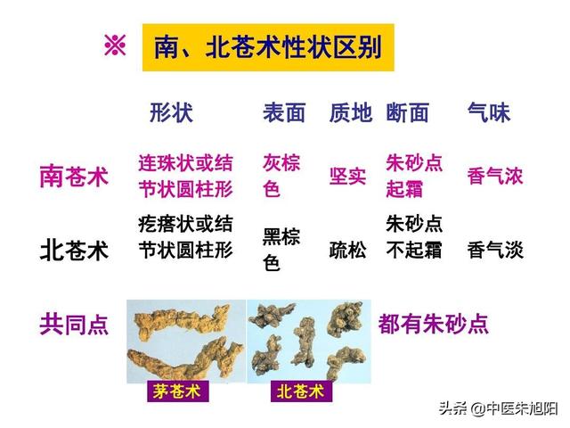 1, nous examinons d'abord les propriétés médicinales et l'attribution. L'atractylodes macrocephala est amer, doux et chaud ; l'atractylodes macrocephala est piquant, amer et chaud. Ici, l'atractylodes macrocephala est doux et l'atractylodes macrocephala est piquant, c'est-à-dire que l'atractylodes macrocephala est plus doux et humide, l'atractylodes macrocephala est plus sec et fort. Le Cangzhu est blanc, blanc dans le méridien du poumon, astringent ; le Cangzhu est noir verdâtre, bois, dans le méridien du foie, ascendant. Il s'agit d'un rôle ascendant et d'un effet descendant. En outre, Atractylodes macrocephala est doux et chaud, en plus de renforcer la rate et d'assécher l'humidité, il peut également tonifier le milieu et bénéficier au qi ; tandis qu'Atractylodes macrocephala est piquant et chaud, en plus de renforcer la rate et d'assécher l'humidité, il peut également soulager l'épiderme.