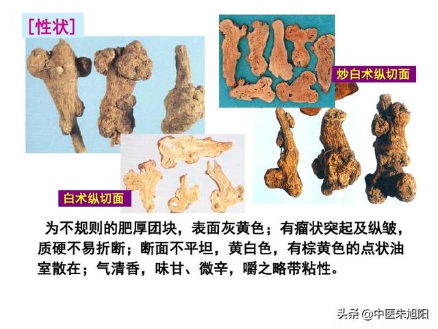 - Atractylodes macrocephala goût doux, légèrement amer, doux dans la rate et l'estomac, goût doux avec le rôle de tonique, parties médicinales des rhizomes souterrains, rhizomes de la croissance de la force est en hausse, les propriétés médicinales de la hausse doté de yang, yang principal chaud, atractylodes macrocephala propriétés médicinales biaisées dans la chaleur de la chaleur, chaud peut être dispersé aux maux de l'humidité, qui agit dans la rate et l'estomac, avec le rôle de la douce et lente tonique, amère et chaude sécheresse de l'humidité.