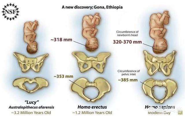 Après l'évolution de l'homme vers la station verticale, le bassin s'est modifié et le canal de naissance s'est incurvé.. Bien que le bassin d'une femme soit déjà beaucoup plus large que celui d'un homme, il était encore trop petit pour une grosse tête humaine. Après tout, si le bassin était plus large, cela empêcherait les humains de marcher debout.