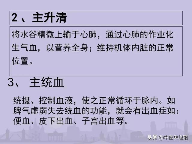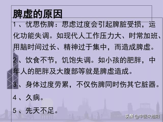 - La fonction de la rate et de l'estomac dans les viscères est particulièrement puissante, transportant les changements alimentaires dans le qi et le sang, ajustant l'élévation et l'abaissement du qi et du sang des viscères, Huang Yuanwu, médecin de la dynastie Qing, a dit "la rate et l'estomac qi, le yin et le yang qi et le pivot du sang", de sorte que la faiblesse de la rate et de l'estomac ne se limite pas aux troubles digestifs, beaucoup de preuves de la situation sont dues à la faiblesse de la rate et de l'estomac, par exemple, causée par un manque de qi et de sang de la rate palpitations, vertiges, insomnie, rêves, et ainsi de suite. Par exemple, les palpitations, les vertiges, l'insomnie et les rêves sont dus à un manque de qi et de sang dans la rate. Faiblesse de la rate, faiblesse de l'estomac, affaissement du qi causé par l'affaissement des organes, vertiges et maux de tête, faiblesse de la rate et de l'estomac due à l'eau et à l'humidité, stagnation de l'eau et de l'humidité dans le flegme, stagnation du flegme et de l'humidité pouvant être causée par des maladies nodulaires, insuffisance de la rate ne pouvant pas réguler le contrôle du sang, causée par la fuite féminine, purpura pédiatrique, etc.