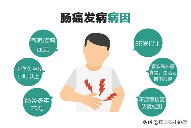 Le cancer de l'intestin comprend le cancer du côlon et le cancer du rectum, et l'incidence du cancer du rectum est plus élevée que celle du cancer du côlon. À l'heure actuelle, le cancer colorectal a tendance à rajeunir. Les groupes de personnes suivants présentent un risque élevé de cancer colorectal : ①. Les personnes qui consomment trop de graisses animales et de viande, tout en consommant moins de légumes et de fruits frais ou en ayant une alimentation pauvre en fibres ; ②. Les personnes atteintes de polypose héréditaire ; ③. Les personnes ayant des antécédents familiaux de tumeurs gastro-intestinales ; ④. Les personnes souffrant de colite ulcéreuse, d'adénome colique, de schistosomiase ; ⑤. Les personnes présentant des changements dans les habitudes intestinales, tels que des selles sanglantes muqueuses, une diarrhée chronique et une constipation.