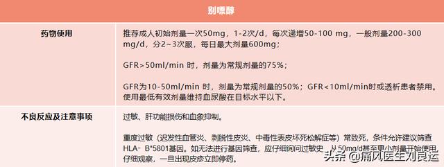 2, médicaments favorisant l'excrétion de l'acide urique : pour favoriser l'excrétion de l'acide urique, vous pouvez choisir le benzbromarone, dose initiale de 25 à 50 mg/jour pour les adultes, dose maximale de 100 mg/jour, à prendre après le petit-déjeuner. Sans danger pour les reins, taux de filtration glomérulaire de 20 à 60 ml/min, 50 mg/jour recommandés, taux de filtration glomérulaire <20 ml/min, ou patients atteints de néphrolithiase à acide urique sont interdits. Les effets indésirables comprennent les troubles gastro-intestinaux, la diarrhée, les éruptions cutanées et l'insuffisance hépatique.
