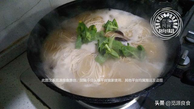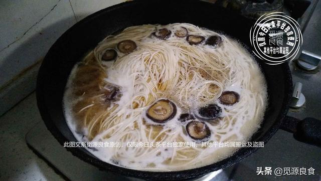 5, sous l'eau, la casserole dans une grande casserole d'eau, feu vif et ébullition, mettre 3-5 champignons trempés, augmenter la fraîcheur de la soupe de nouilles, cuire pendant un certain temps, dans les nouilles, les nouilles seront cuites, après quelques mous et pourris, dans le bol, soupe de nouilles, je vais alors mettre un peu de bok choy et, après la cuisson pour briser la vie des champignons, avec les champignons ensemble avec les nouilles dans le bol ;