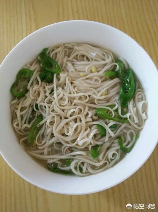 4. Ma pratique courante est la suivante : d'abord, faire frire une assiette de porc effiloché au poivre vert, puis ajouter au porc effiloché au poivre vert frit une petite quantité de légumes verts, tels que des feuilles de chou, du chou, les laisser cuire dans la soupe de porc effiloché au poivre vert jusqu'à ce qu'ils soient brisés, puis laisser mijoter à feu doux, les nouilles de soupe transparentes étant timides, les légumes absorbant le porc effiloché au poivre vert dans la graisse, les mettre dans les nouilles, et ne pas sentir la graisse ;