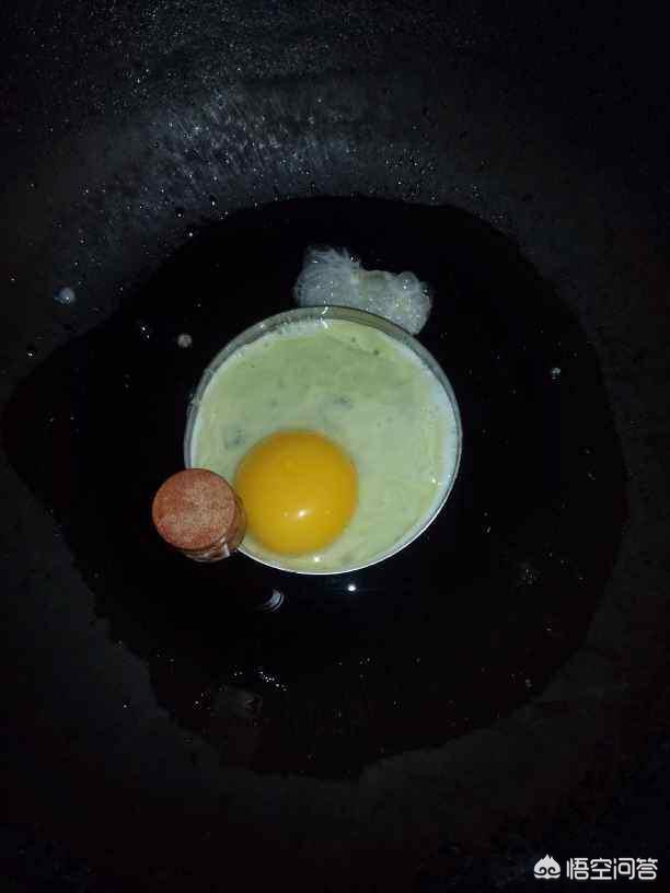 Mettre un peu de sel et d'huile dans la poêle, poser le moule pour préchauffer, et battre les œufs dans la poêle.