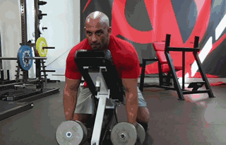 Attention :Tout au long du processus, gardez les bras tendus et immobiles des deux côtés et appuyez-vous sur vos omoplates pour pousser les haltères vers le haut.