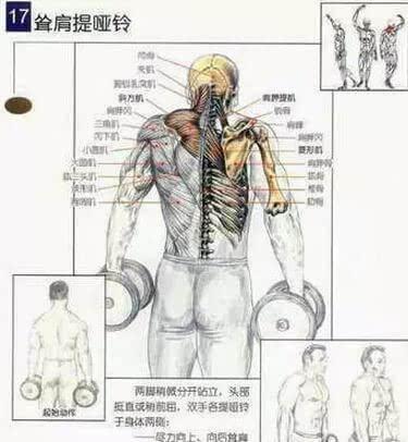 Avec 1. haussement d'épaules les mêmes éléments essentiels. Exercice, pieds écartés, corps penché vers l'avant et le sol à maintenir parallèle, deux mains tenant une barre ou des haltères suspendues devant les jambes, les deux muscles des épaules à se détendre complètement vers le bas, puis, aux rhomboïdes, deltoïdes, et les groupes de muscles du haut du dos de la force, de sorte que les deux épaules vers le haut haussé jusqu'à la position la plus élevée, une courte pause pour faire les deux épaules lentement se détendre vers le bas pour restaurer.