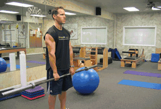 Tenez-vous debout avec un haltère dans les deux mains, les bras tendus de chaque côté.