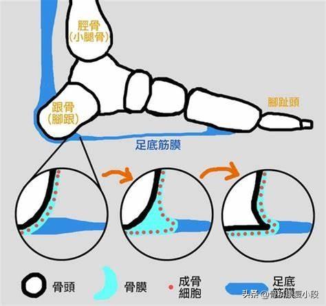 Bien sûr, dans certains cas, comme le fascia plantaire tire constamment sur le périoste de l'os du talon, si la force de traction continue d'être soulevée, le périoste peut être tiré hors de l'espace, où les ostéoblastes se déposent et se transforment ensuite en os, qui se développe lentement en éperons pointus que l'on voit sur les radiographies. (Bien entendu, il s'agit encore d'un système théorique pour la formation des épines osseuses).